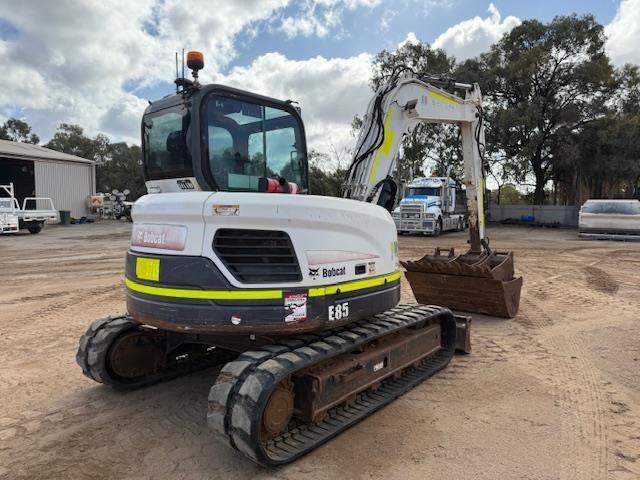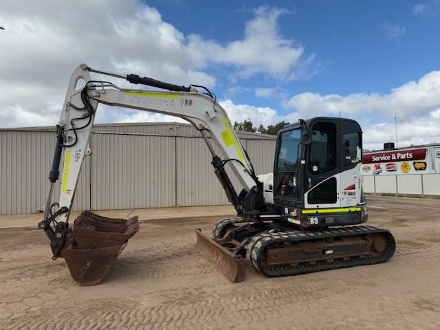 2015 Bobcat E85 Excavator with 5,600 hours, good tracks, enclosed aircon cab, UHF, stereo, push blade, long arm version, auxiliary hydraulics, hydraulic quick hitch with a full compliment of 4 buckets, $41,000 plus GST