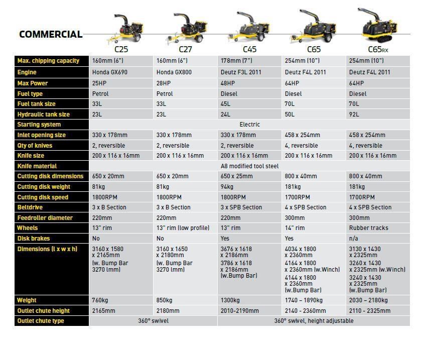 | Model | C27 WOOD CHIPPER (28HP - 160MM CAPACITY) |