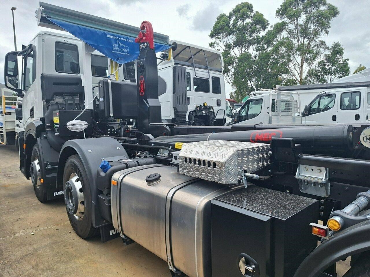 2023 Iveco S-Way Hooklift & Bi Fold 8x4 - Wastecorp SCK206 20T MEC Hook lift - S-Way 8x4 AD460 Day Cab 6000mm Wheelbase fitted With TPMS and centre seat. Be quick as this 8x4 will not last long. Only vehicle for the remainder of the year. Come Visit The 2022 & 2023 Iveco Metro Dealer Of The Year!!!