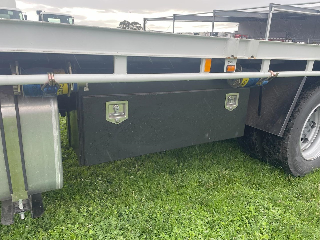 6 x load binders in track under body with winch bar in holder