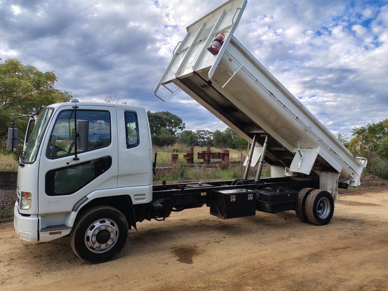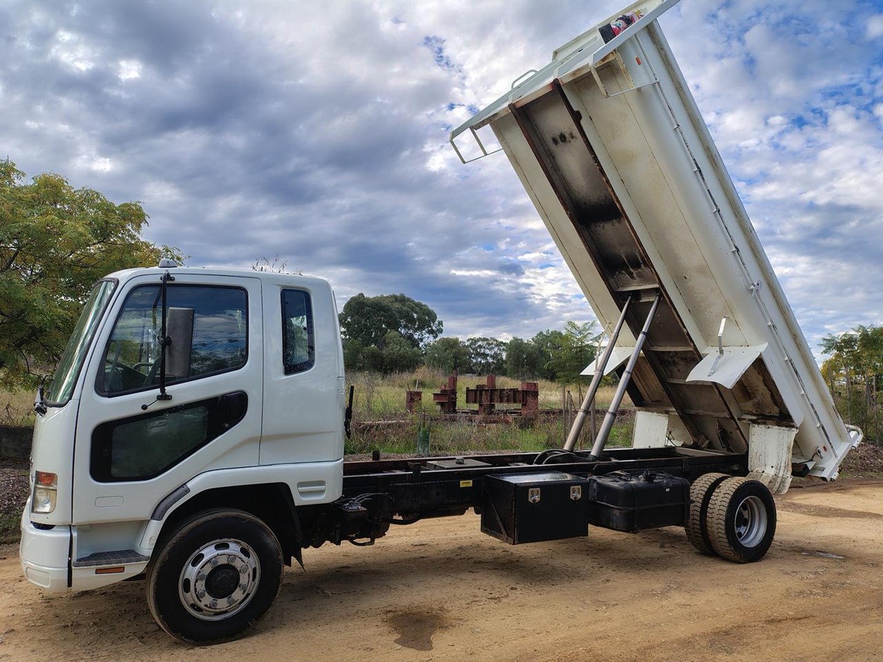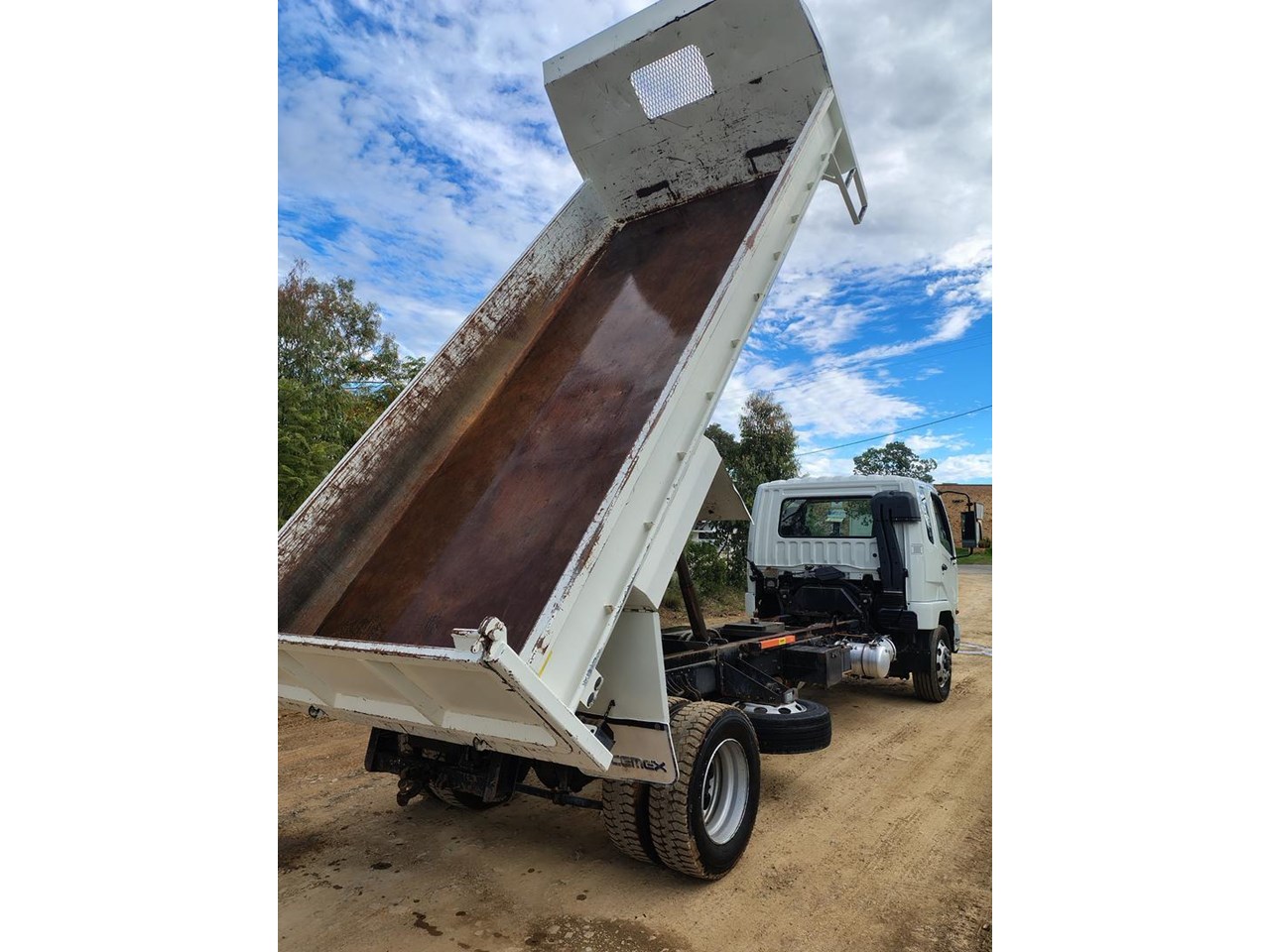 2009 Mitsubishi FK 600 Tipper, 12 t GVM, 5150mm long tipping body with two way tail gate, tow bar with combinatin pintle hook / 50mm ball, Tare weight 5710kg. Will carry 6300 KG (6.3t)