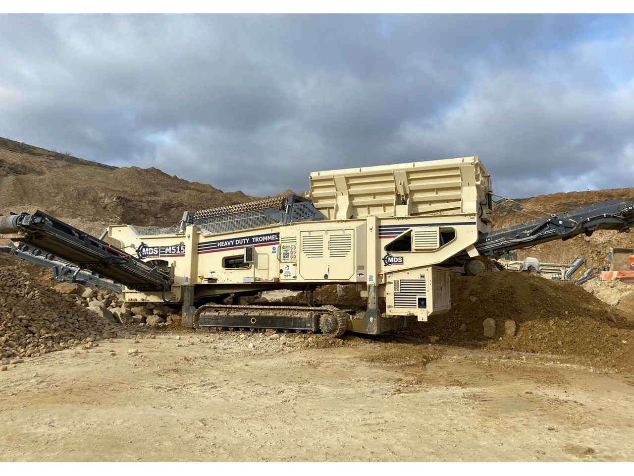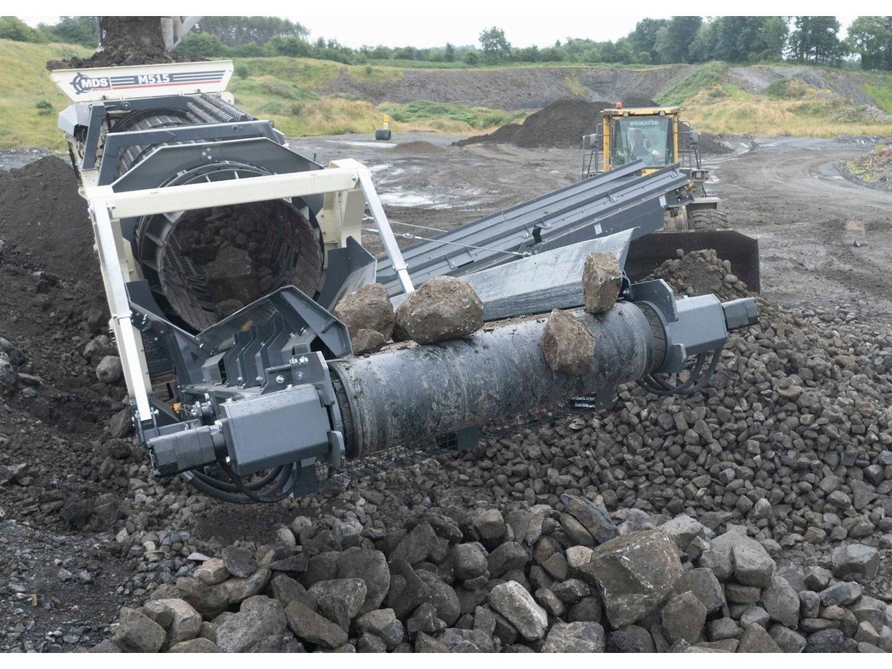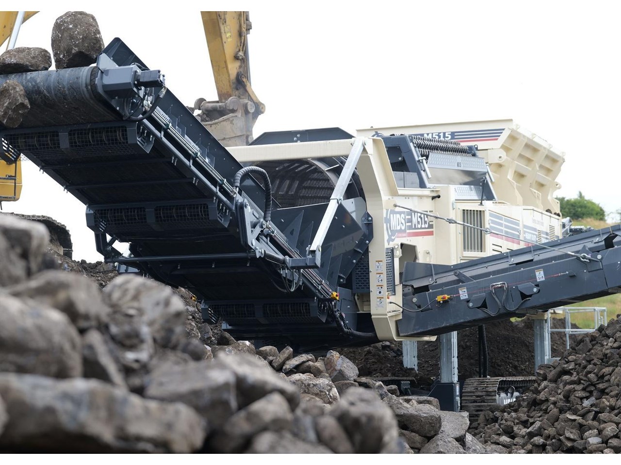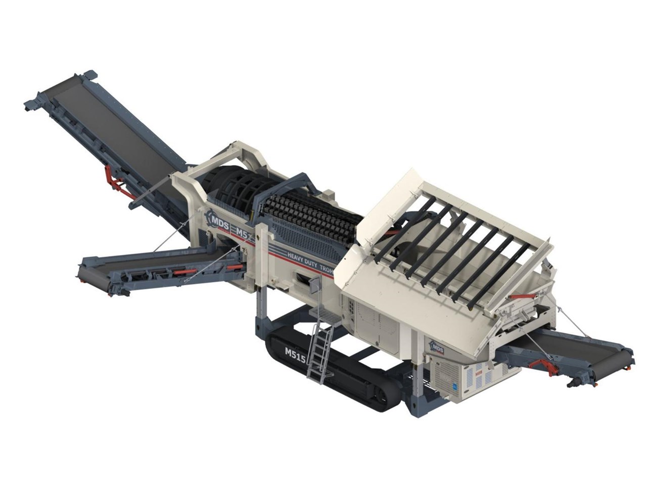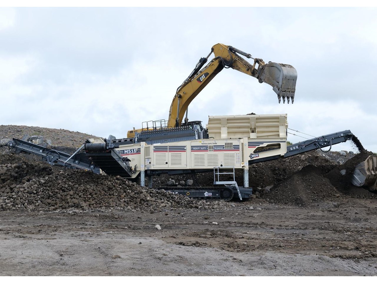The Terex MDS M515 Heavy Duty Trommel, the flagship model in the Terex MDS range. It excels at crafting RipRap and reclaiming rocks entangled with clay and other adhesive materials. The updated design incorporates new elements that enhance transportation, accessibility, and stockpile capacities.