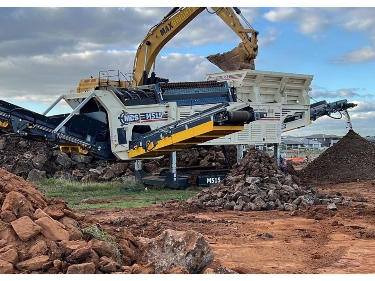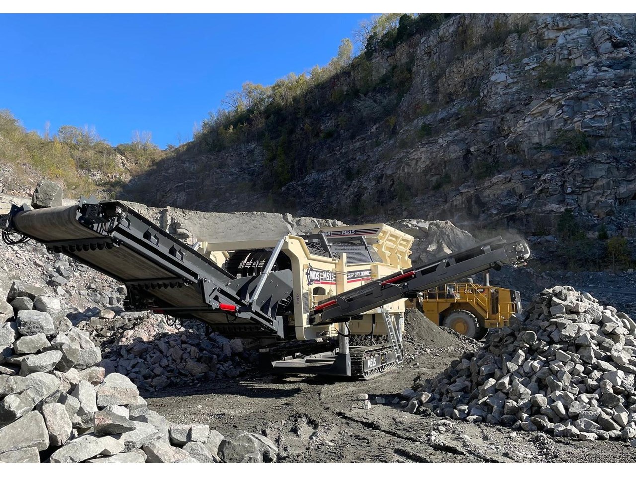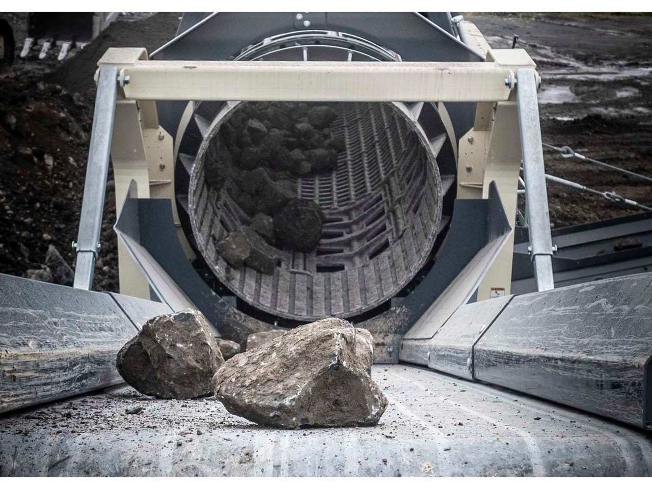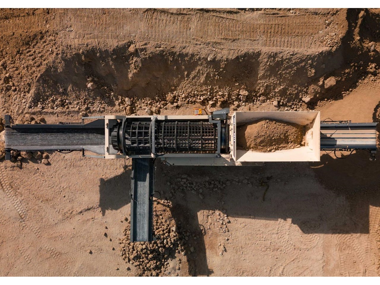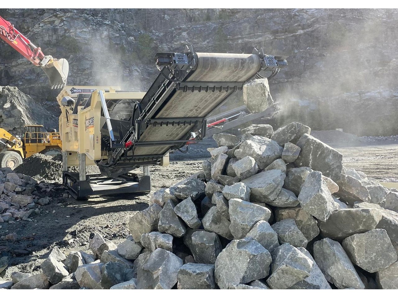 The Terex MDS M515 Heavy Duty Trommel, the flagship model in the Terex MDS range. It excels at crafting RipRap and reclaiming rocks entangled with clay and other adhesive materials. The updated design incorporates new elements that enhance transportation, accessibility, and stockpile capacities.